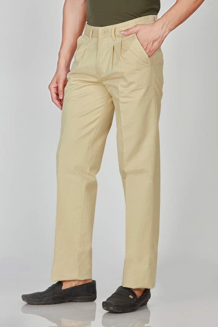 Elevate your wardrobe with our 100% Cotton Pants with Pleats – the perfect fusion of timeless style and modern comfort. Whether you're heading to the office, a casual gathering, or a special event, these chinos will be your go-to choice for a polished and confident look. Experience the perfect blend of style, comfort, and durability with these exceptional chinos.